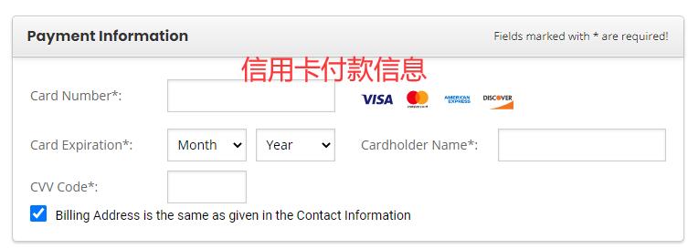 - 付款信息(Payment Information):填写信用卡卡号、CVV 码、卡片过期年月以及持卡人姓名拼音(非大陆用户可填写英文名)。注意:持卡人姓名拼音需按 “名在前、姓在后” 的格式填写,例如 “张三” 需填写为 “San Zhang”。