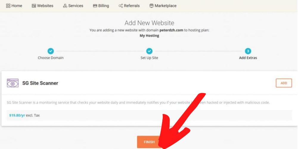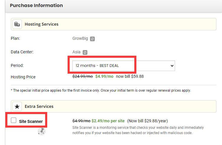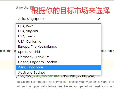 - 注意事项:请勿勾选收费项目 “SG Site Scanner”,该服务需额外支付约 20 美元 / 年。其主要功能是每日监测网站安全,若网站遭遇黑客攻击或注入恶意代码,会第一时间发出通知,费用为$2.49/月/网站(年付$29.88);