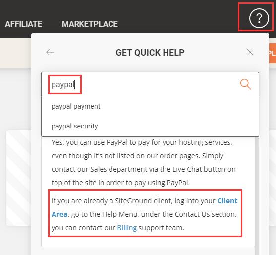 除信用卡支付外,也支持 PayPal 付款,具体操作如下:点击页面右上角的问号图标,搜索 “PayPal”,登录客户中心(Client Area)后找到 “Contact us”(联系我们),通过客服协助完成 PayPal 付款。
